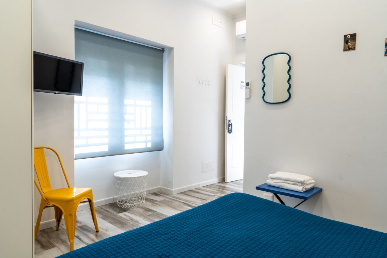 Camera matrimoniale molto confortevole, dal design semplice. Amata dai nostri clienti perché presenta un'ampia finestra che affaccia su strada.